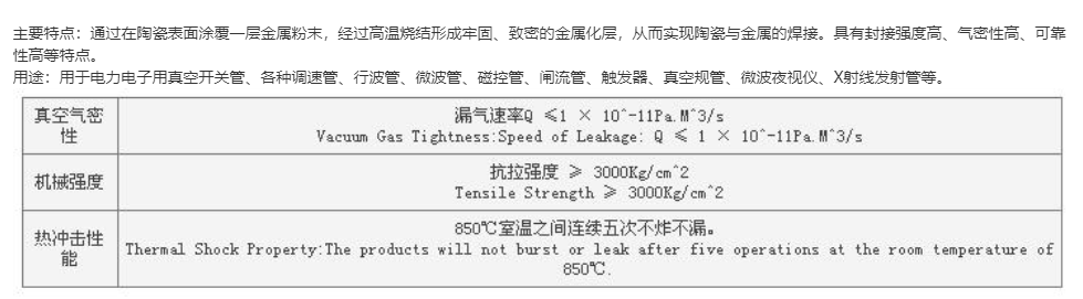 公司金属化陶瓷参数
