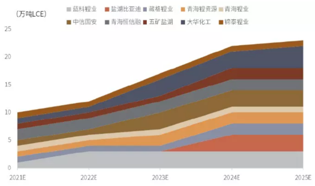 因此,生产高性能吸附剂及纳滤膜及反渗透膜的相关企业将是我国盐湖提锂产业的快速发展进程中的主要受益者。尽管新能源汽车、储能等行业是确定性的发展机会,但从行业角度来看锂作为金属元素,仍属于周期性行业。行业顺周期的产能扩张就是一场竞赛,尽管不能保证新增产能卖到最高价,但在价格出现拐点时,它能以足够低的规模成本维持利润率增长。这就像博弈论里的古诺寡头竞争,在一个多边非合作博弈的纳什均衡模型,每个竞争者都想比对方增加更多的市场占有份额。市场总的供应量再次压倒需求,价格的信号棒又亮起来,指挥行业进入又一轮平衡。所以我们必须在未来锂价不确定的背景下,寻找确定性的机会。供需关系时刻处于动态平衡过程,在任何一方失衡的情况下,锂价都会受到较大影响。从目前来看,由需求端爆发性的增长带来供给端扩产是确定性趋势。尤其是盐湖提锂方向的扩产更是重中之重。锂资源的需求的主要增长极是新能源汽车动力电池和储能电池,随着新能源汽车渗透率的提高,以及光伏风能等再保障电网稳定的储能设备加装,都是可预期的未来,因此全球对锂资源需求的持续增长是确定性的趋势。在今年锂价大涨的背景下,主要企业也纷纷宣布了扩产计划。2021年,青海盐湖的主要产能有10万吨LCE,按照碳酸锂19.7万元/吨的价格,市场规模约200亿。据初步统计,国内已建成和有明确规划的产能项目达到25万吨LCE,而盐湖项目的产能一般需要1-3年建设周期。如果达产顺利,到2024年的产能至少是目前的2.5倍,成为全球锂资源不可或缺的一部分。占据全球碳酸锂产能供应量约1/5。